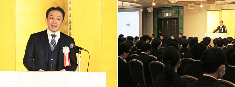 代表取締役社長の関口より、新卒社員へ祝辞を贈りました。